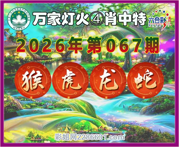067期:《万家灯火》 ④肖中特【猴.虎.龙.蛇】开:虎05准上榜高手