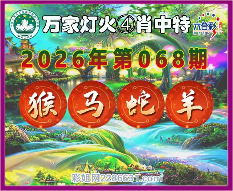 068期:《万家灯火》 ④肖中特【猴.马.蛇.羊】开:猴23准上榜高手